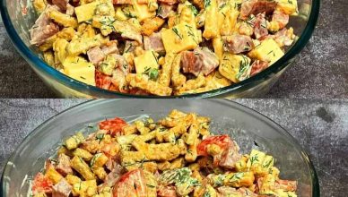 Покажу вам дуже смачненький салатик! Нічого складного – простий, яскравий та смачний салат із сухариками. Перед ним ніхто не встоїть! Інгредієнти: Приготування: У
