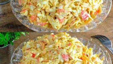 Соковитий та дуже смачний салатик сьогодні приготую! Продукти ідеально поєднуються та доповнюють один одного! Буквально за лічені хвилини роблю його! Інгредієнти: Приготування: Крабові