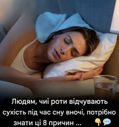 Цей стан частіше виникає у другій половині ночі та може бути викликаний різними причинами. Нижче наведено вісім поширених факторів, які можуть сприяти сухості в роті під час сну.