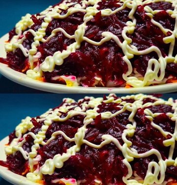 - Буряк — фінальний шар, теж злегка змастити майонезом.