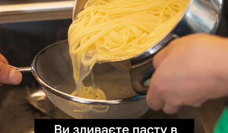 • Метод ополоника:  перед тим, як злити воду з макаронів, тримайте один або два ополоники води.