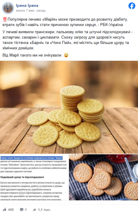 Популярне печиво «Марія» може призводити до розвитку діабету, втрати зубів і навіть стати причиною зупинки серця, – РБК-Україна