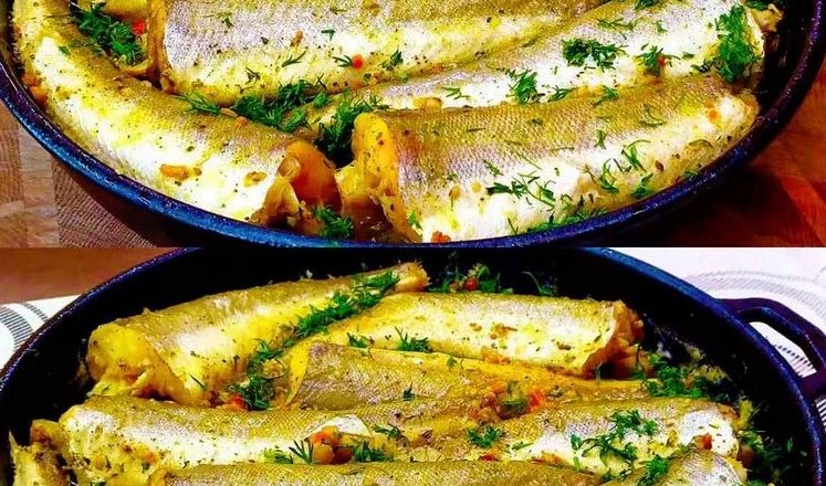 Коли рибка готова — нарізаю свіжий кріп (можна петрушку, що є в холодильнику), і трішечки посипаю зверху — для запаху й краси. Смачного!