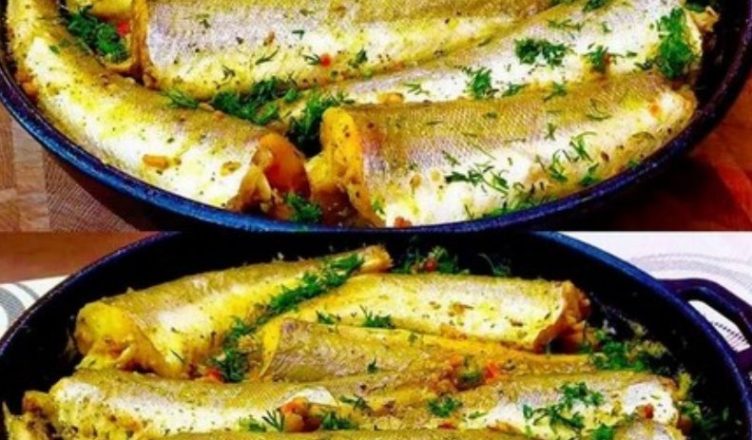 Коли рибка готова — нарізаю свіжий кріп (можна петрушку, що є в холодильнику), і трішечки посипаю зверху — для запаху й краси. Смачного!