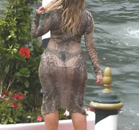 Співачка була одягнена в облягаючу, прозору сукню з тваринним принтом.
