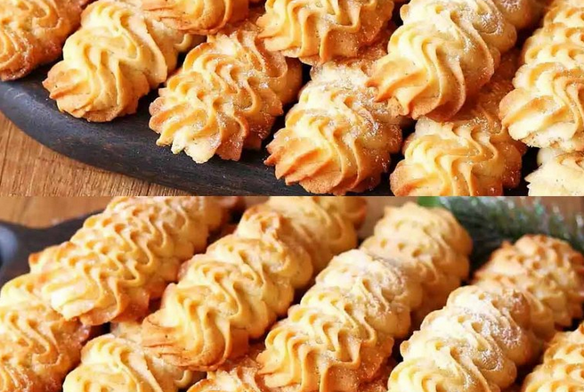 Перекладаю масу у кондитерський мішок, у мене насадка зірки. Стандартне деко від духовки застеляю пергаментом, викладаю через мішок печиво. Розігріваю духовку до 180 градусів, випікаю 10-15 хвилин.