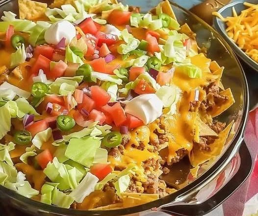 Ця запіканка добре поєднується з простим зеленим салатом, мексиканським рисом або гуакамоле. Її також можна подавати з додатковою картоплею фрі для вмочування.Запіканка з тако «Ходімо, де є» – це проста та ситна страва, яка поєднує всі смаки класичного тако-вечора в одній зігріваючій запеченій страві. З шарами приправленої яловичини, хрусткою картоплею фрі, вершковою сметаною та розплавленим сиром вона неодмінно сподобається всій родині. Більше того, вона універсальна – ви можете додати свої улюблені начинки для тако, щоб персоналізувати страву саме так, як вам подобається. Спробуйте цей рецепт вечері, яку легко приготувати та яка сповнена смаку!