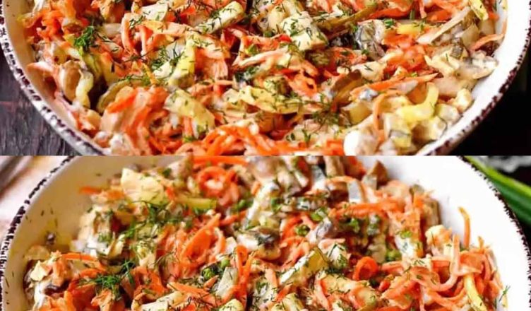 Мій улюблений салат з куркою, грибами та морквою по-корейськи! Ситний та поживний салат, який дуже подобається чоловікам!
