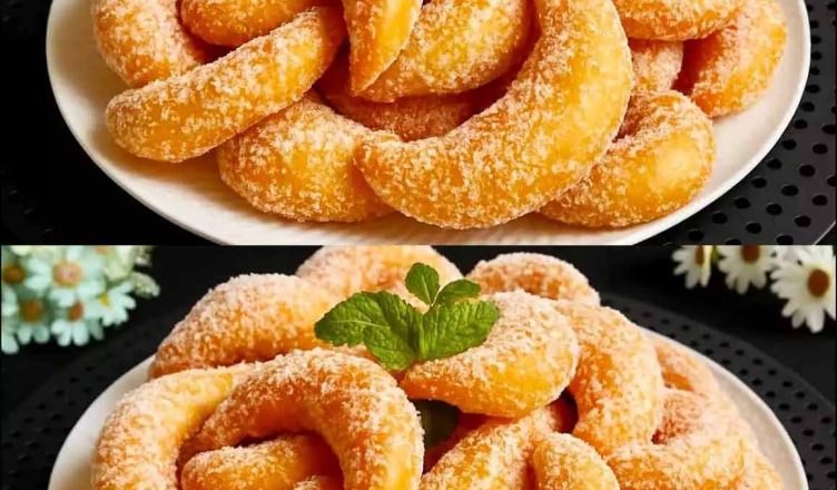 Замішую вінчиком йогурт, яйце, ванільний цукор, цукор, сіль та олію. Просіюю борошно та розпушувач, замішую тісто руками. Тісто розкачую у пласт, нарізаю формочкою півмісяць.
