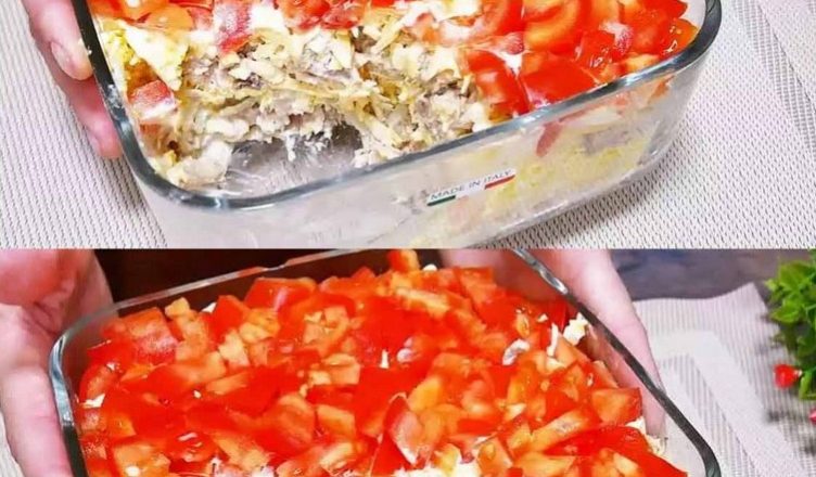 У мене останній шар салату порізані кубиками помідори.