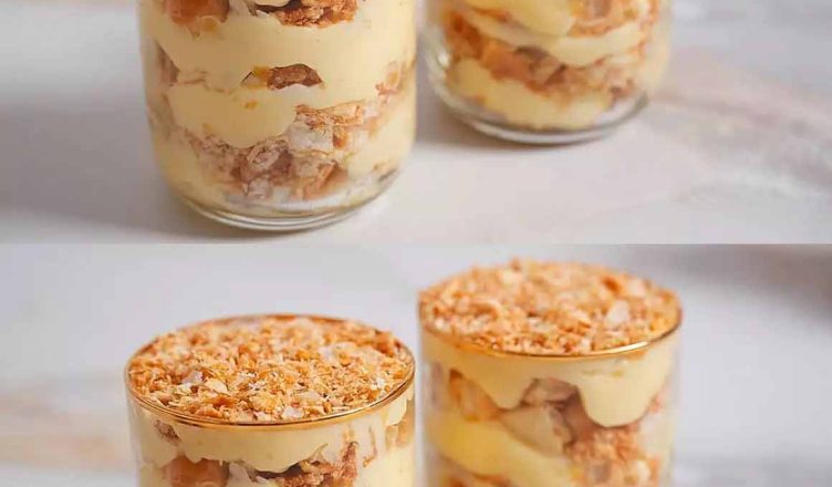 Викладаю у чашу трішки крему і трішки печива. Так складаю увесь десерт. Посипаю крихтою від печива. Ставлю в холодильник на 1 годину. Смачного!