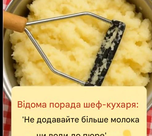 Ось швидкий рецепт на чотирьох: відваріть 1 кг картоплі сорту Юкон або Рассет до готовності. Злийте воду та поверніть у каструлю, щоб вона обсохла. Розімніть її вручну — ніколи не використовуйте для цього блендер. Додайте 175 г несолоного вершкового масла, потім повільно вмішайте 100 мл гарячих вершків.
