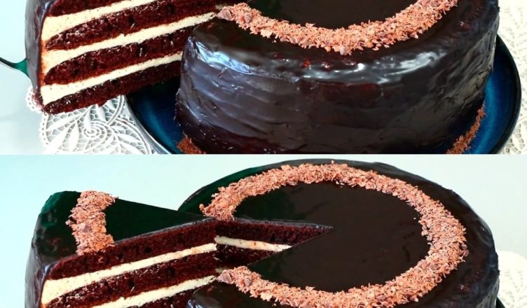 Змішайте цукор, какао, молоко і доведіть до кипіння на середньому вогні, постійно помішуючи. Додайте масло, розмішайте і остудіть. Полийте торт зверху і по боках, прикрасьте натертим шоколадом.