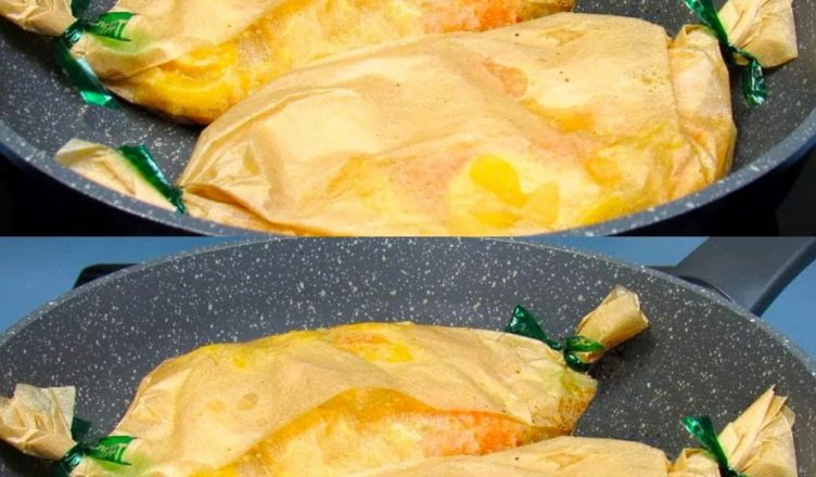Викладіть пакети на суху сковороду швом догори і готуйте на середньому вогні під кришкою 15 хвилин.