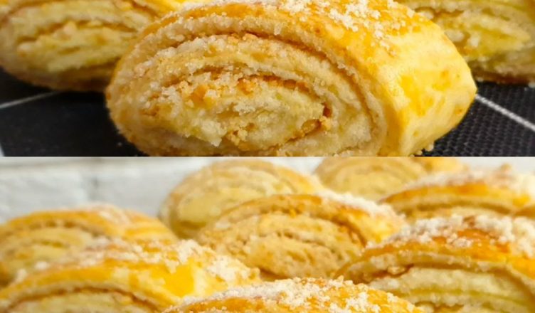 Нарізати рулет під кутом на шматочки, викласти на деко з пергаментом. Випікати при 180°C близько 30-35 хвилин до золотистої скоринки.