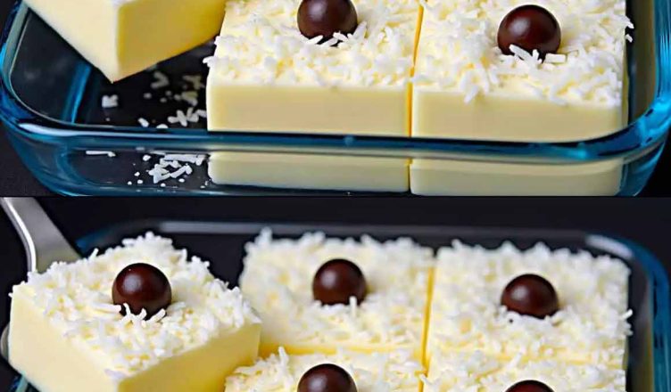 Одразу ж посипаю кокосовою стружкою і відправляю у холодильник на 3-4 години. Потім нарізаю шматочками.