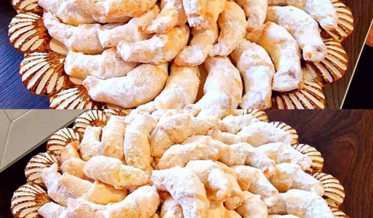 Деко від духовки застилаю пергаментом і викладаю печиво. Випікаю у розігрітій духовці при 180 градусах 30-35 хвилин. Беру пакет, висипаю цукрову пудру і ванілін, кладу туди рогалики і струшую. Таке м’яке печиво вам точно сподобається до чаю!